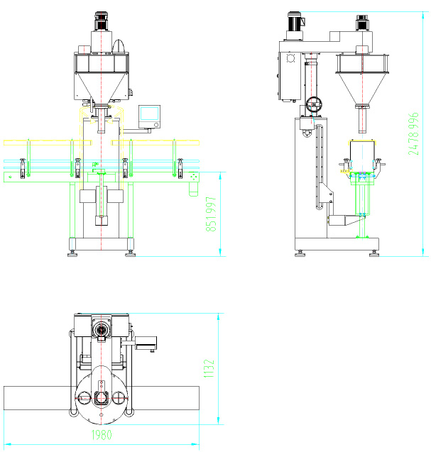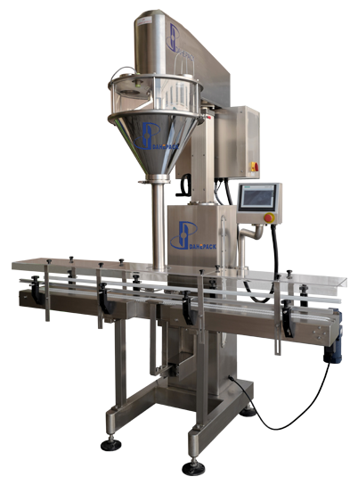 該機主要針對容易揚塵的超細粉末及高精度的包裝要求而開發(fā)設計,能完成瓶子自動定位和升降、充填及計量等工作,它由一臺稱重式螺桿充填機、一臺鏈板輸送帶及一個氣動定位裝置組成,根據(jù)裝在容器下面的重量傳感器給出的信號完成雙速充填、計量及升降等工作。適用于包裝添加劑、碳粉、滅火器干粉、其它超細粉末、及有高精度包裝要求的粉末等。