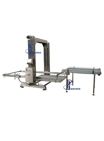 工作原理:人工用地牛將整托盤空罐運至指定位置(碼垛方式為罐口向上),點動啟動按鈕,系統會自動通過光電檢測確定空罐托盤高度,根據后面緩存皮帶對罐子的需求,將一層空罐通過刮板推至緩存面板上,然后再調整上下高度與后道的緩存皮帶進行高度對接,再將空罐送至緩存皮帶上待用。緩存皮帶會根據理罐機對罐子的需求,將罐源源不斷的送至理罐機上。卸垛機每卸完一層空罐,設備自動提醒,收到提醒后人工將兩層空罐之間的紙板拿走,直至整個托盤上的空罐全部卸完,再進行下一個循環(huán)。