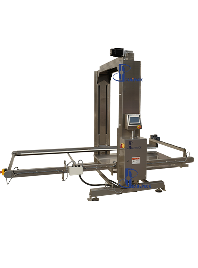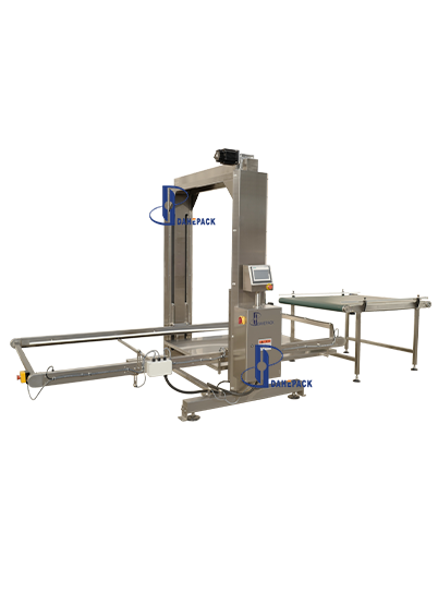 運行速度:≥60罐/分鐘(在空罐供應及時的情況下) 適應最大罐垛規(guī)格:1400*1300*1800mm 電源供應: 3P AC208-415V 50/60Hz 整機功率:1.6KW 整機外形:4766*1954*2413mm 功能:將一層一層的空罐送到理罐機上,應用于馬口鐵罐及鋁罐的卸空罐作業(yè) 整機主體框架不銹鋼結構,部分傳動軸碳鋼電鍍 伺服馬達和減速機驅動取罐裝置升降 PLC控制、觸摸屏人機界面顯示,操作簡便 帶一條傳送帶,PVC綠色皮帶,寬度1200mm